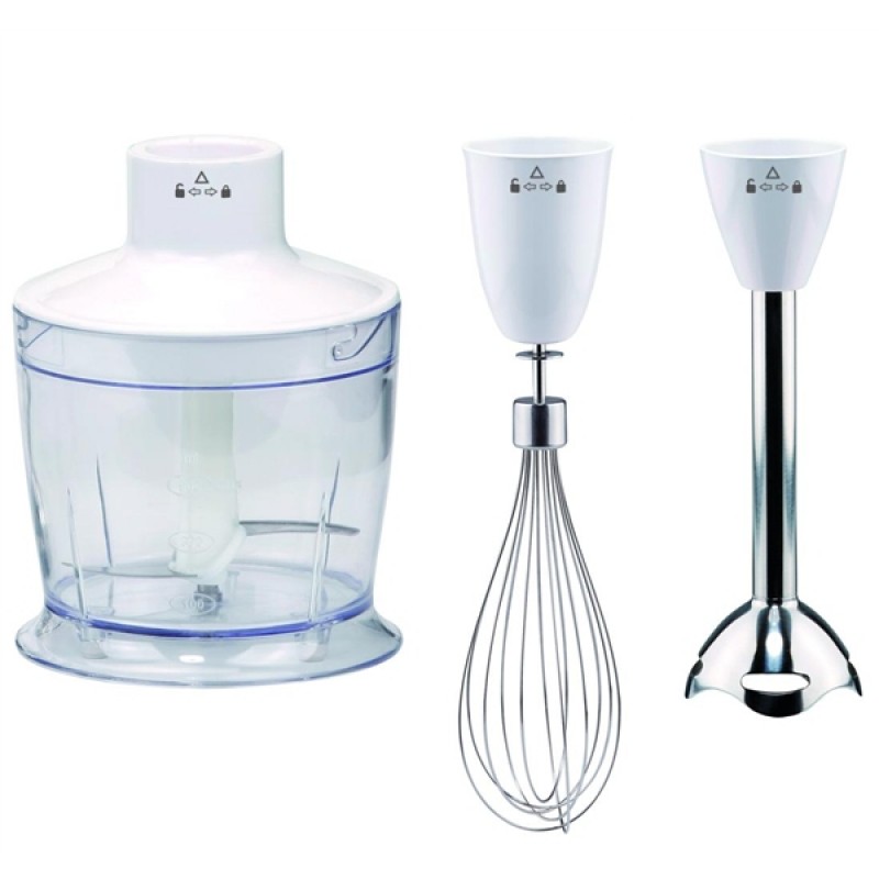 Příslušenství mixéru/šlehače: sekáček potravin (chopper); šlehací metla/metly; tyčový mixer