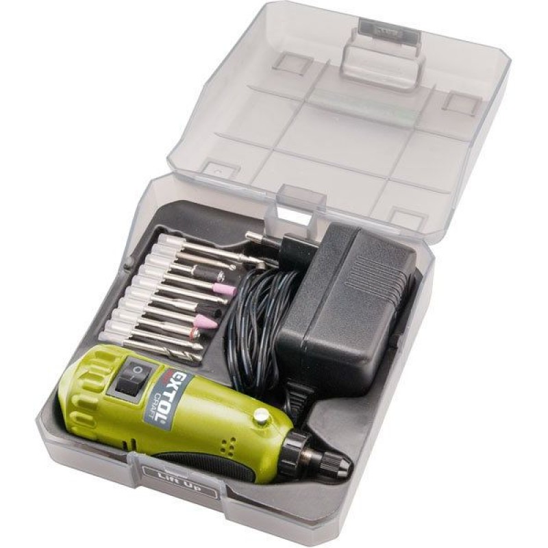 EXTOL CRAFT mini vrtačka/bruska s transformátorem 404121Minibruska/minivrtačka Extol Craft® je určena k jemnému broušení, odhrotování, frézování, gravírování, leštění a k jemnému vrtání s použitím k tomu určených nástrojů. LED dioda osvětluje pracovní místo.