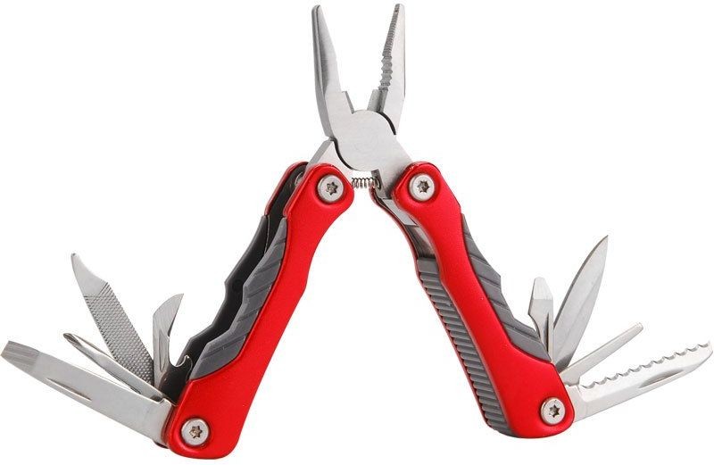 EXTOL CRAFT nůž kapesní multifunkční s nářadím9-dílný, velikosti rozloženého -110mm, složeného -70mm, kleště, 2xpilník, pilka,střenka nože,šroubováky plochý+PH, 2xotevírák (konzervy,nápoje),