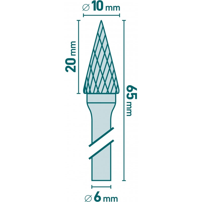 EXTOL INDUSTRIAL fréza karbidová, konická-jehlan, pr.10x20mm/stopka 6mm,sek střední (double-cut) 8703794