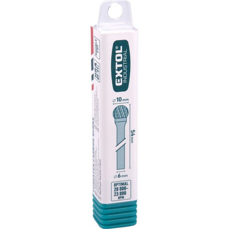 EXTOL INDUSTRIAL fréza karbidová, kulová, pr.10mm/stopka 6mm,sek střední (double-cut) 8703734