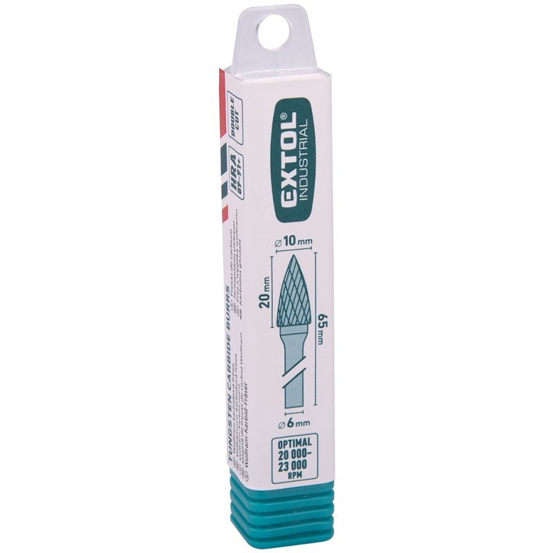 EXTOL INDUSTRIAL fréza karbidová, ostrý oblouk, pr.10x20mm/stopka 6mm,sek střední (double-cut) 8703764