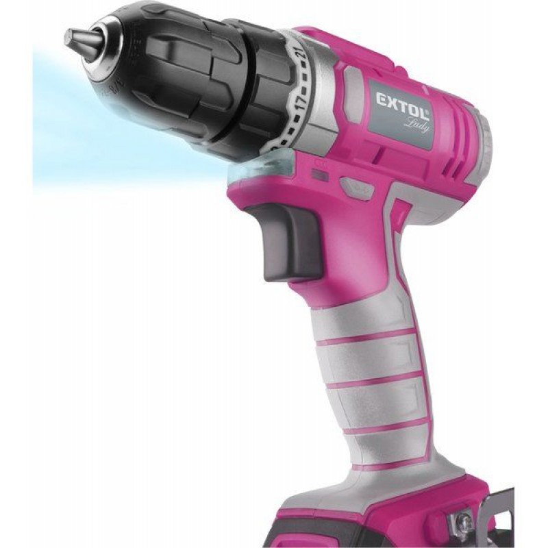 EXTOL LADY vrtací šroubovák aku, růžový, 12V Li-ion, 1300mAh, sada v tašce 402401Charakteristika: