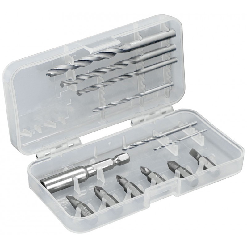 • příslušenství: vrtáky 1,5-2-2,5-3-3,5-4-5-6mm, bity (-) 5mm, PH 1-2, HEX 5, TORX 20, sada 13ks