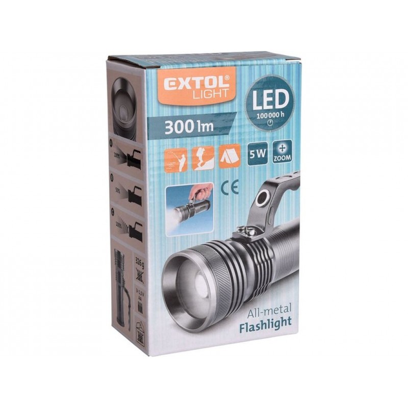EXTOL LIGHT svítilna 300lm, zoom, celokovová, 5W LED 43150