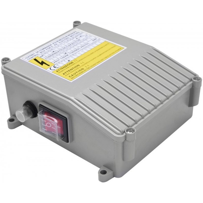 - kondenzátor, ochrana proti přetížení a spínač jsou umístěné v oddělené krabici