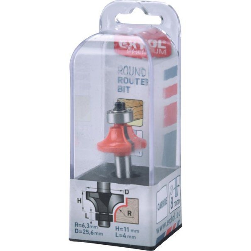 EXTOL PREMIUM fréza zaoblovací (vydutá) do dřeva, R3xD21,5xH12, stopka 8mm 8802103