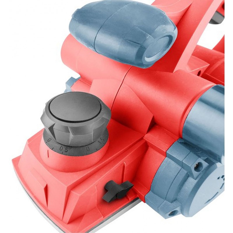 Velmi silný hoblík s hoblovací šířkou 110mm je určen k hoblování, srážení a drážkování dřeva, např. trámů a prken. Můžete s ním hoblovat 0-3mm při jednom protahu a hloubka úběru se nastavuje po 0,25mm. Při hoblování polodrážek můžete využít rozsah 0 až 8mm. Na hoblovací desce jsou dvě různě hluboké drážky sloužící k jednoduchému srážení hran a sklopný ochranný trn, který chrání při přerušení práce, nože a plochu pod hoblíkem proti poškození. Pokud preferujete práci bez tohoto ochranného trnu, můžete ho jednoduše zajistit v desce, aby se nevyklápěl. Pro udržování čistého pracovního prostoru lze k hoblíku připojit odsávání z pravé nebo levé strany.