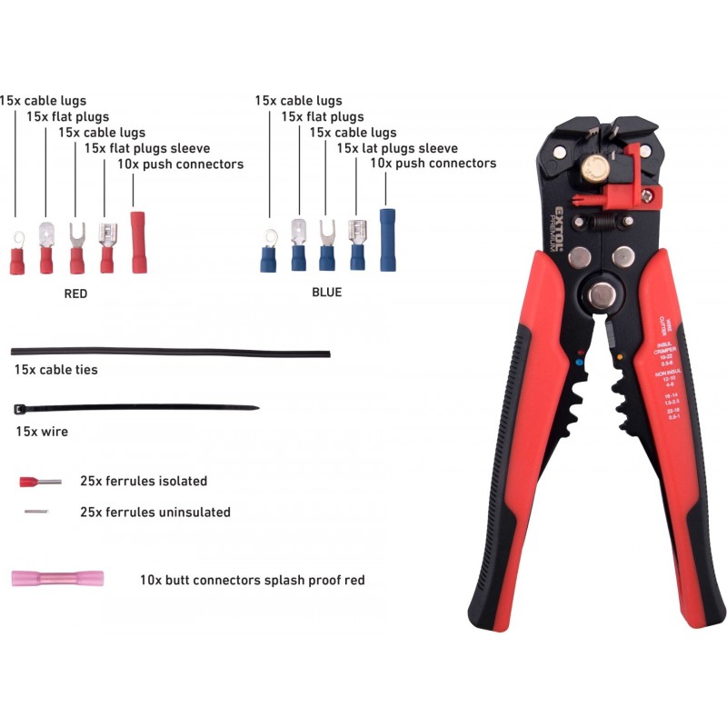 EXTOL PREMIUM kleště odizolovací/krimpovací a koncovky, sada 231ks 8831126
