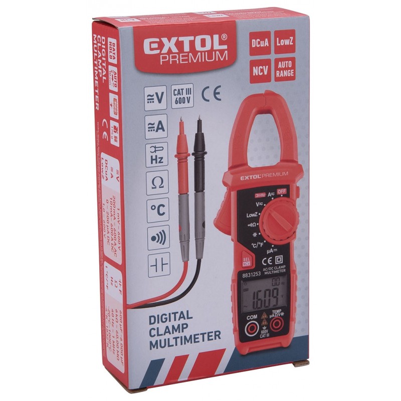 EXTOL PREMIUM multimetr digitální, klešťový, AC/DC proud a napětí, True RMS, LowZ 8831253