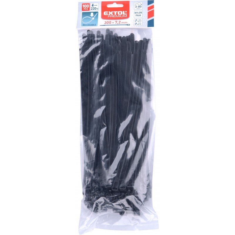 EXTOL PREMIUM pásky stahovací černé, rozpojitelné, 300x7,2mm, 100ks, nylon PA66 8856258