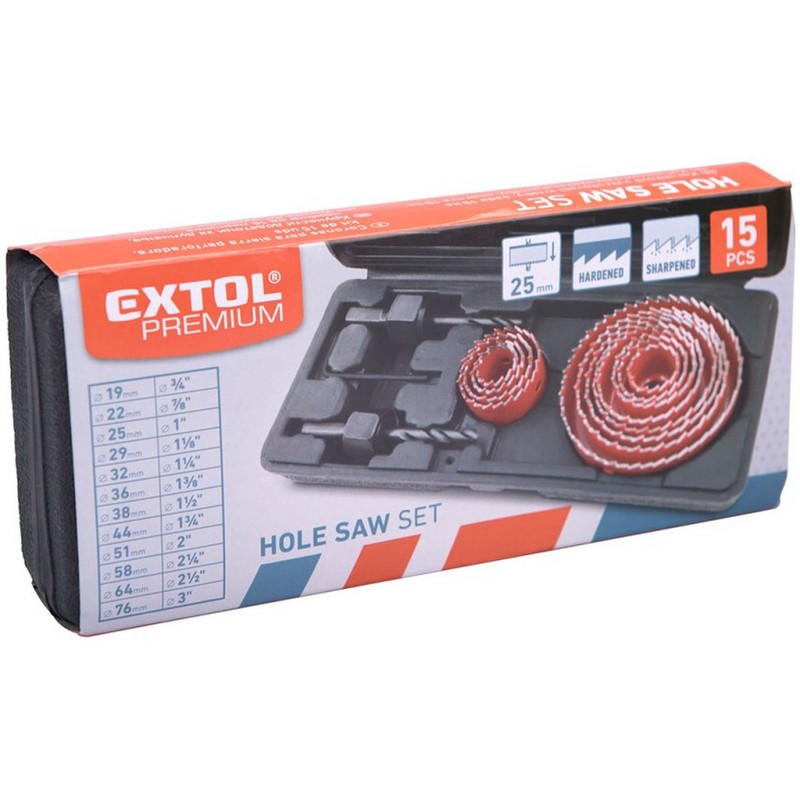 EXTOL PREMIUM vrtáky vykružovací korunkové, 12 průměrů O 19-76mm 8801606
