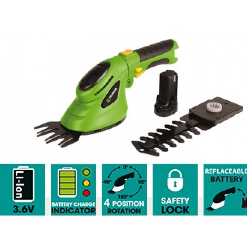 Nástupce oblobíného modelu FZN 4001 A. I tento model shledáte jako ideálního pomocníka pro úpravu okrajů trávníku a tvarování okrasných dřevin. Rukojeť nůžek je možné otáčet a pro pohodlnou práci zvolit jednu ze 4 pracovních pozic. Li-ion baterii těchto nůžek lze vyjmout, a dokoupíteli druhou, nemusíte práci přerušovat po dobu nabíjení. Balení dále obsahuje dvě lišty, které lze snadno vyměnit. Širší a kratší lišta je primárně učena k úpravě okrajů trávníků, delší lišta k úpravě okrasných dřevin. Doba práce na jedno nabití představuje cca 30 min, doba nabíjení 4 h. Adaptér pro dobíjení baterie je součástí balení. Náhradní baterie je dostupná jako samostatné příslušenství.
