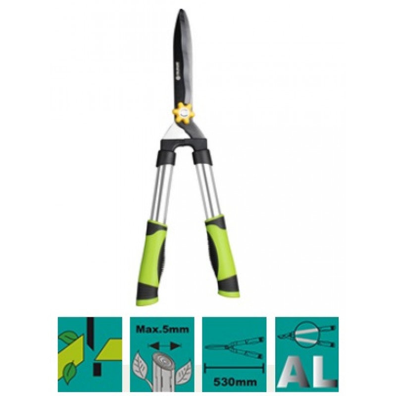 Nůžky živý plot dokáží ustříhnout větve hravě do 5 mm. Komfortu stříhání velmi pomáhá délka nůžek 530 mm, také jejich nízká hmotnost díky nejen kvůli své kratší délce ale také rukojetím ze slitiny hliníku. Ergonomické úchyty s pogumovaným povrchem zaručí neskluznost i námahou vlhčích dlaní.