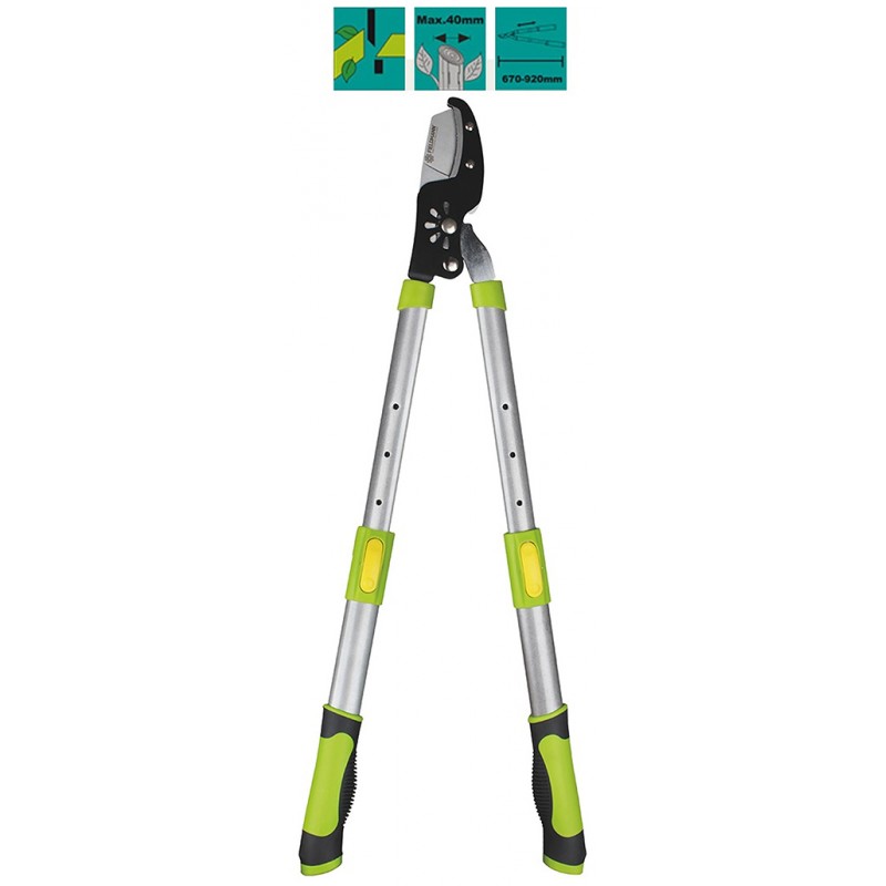 Teleskopické nůžky na větve s klínovou stříhací čepelí, která dokáže ustříhnout větve hravě do 50 mm. Komfortu stříhání velmi pomáhá délka nůžek 680 až 920 mm a také klínový střižný systém na stříhací hlavě ulehčující střih tlustších i suchých větví. Ergonomické úchyty s pogumovaným povrchem zaručí neskluznost i námahou vlhčích dlaní.