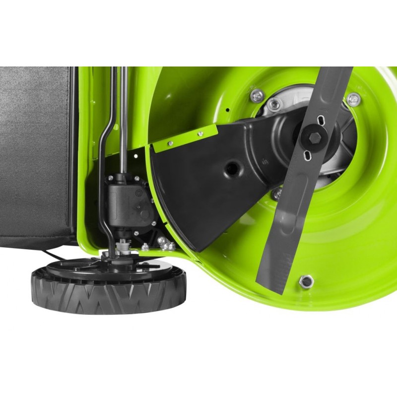 - Výšku sečení lze nastavit na každém kole samostatně ve třech pozicích 25/40/55 mm.