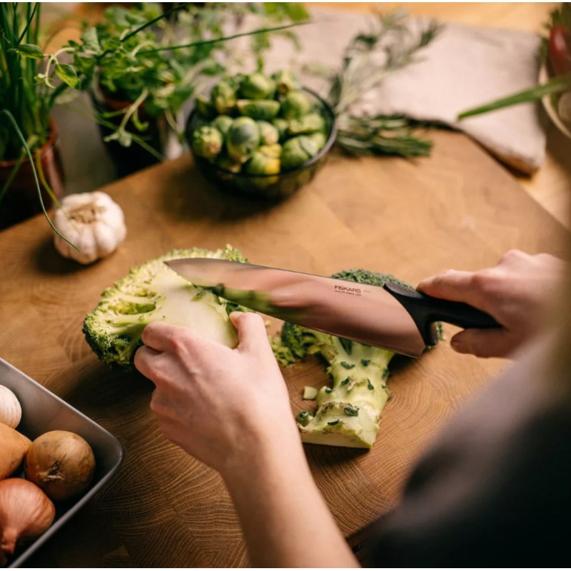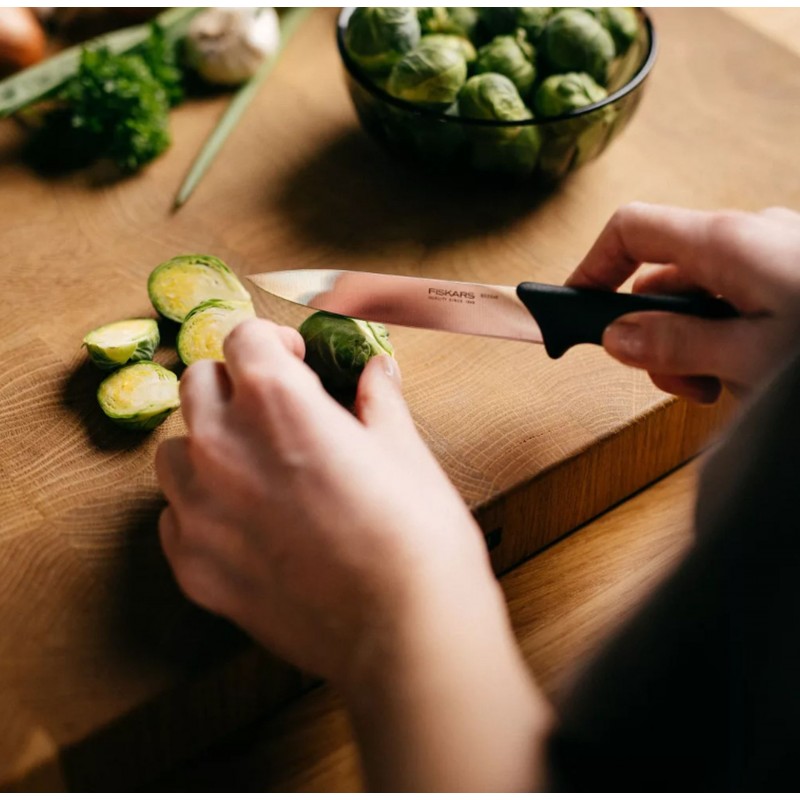 Pro dlouhou životnost doporučujeme pravidelné broušení pomocí ocílky nebo ostřiče nožů FISKARS. Nože jsou vhodné do myčky nádobí.