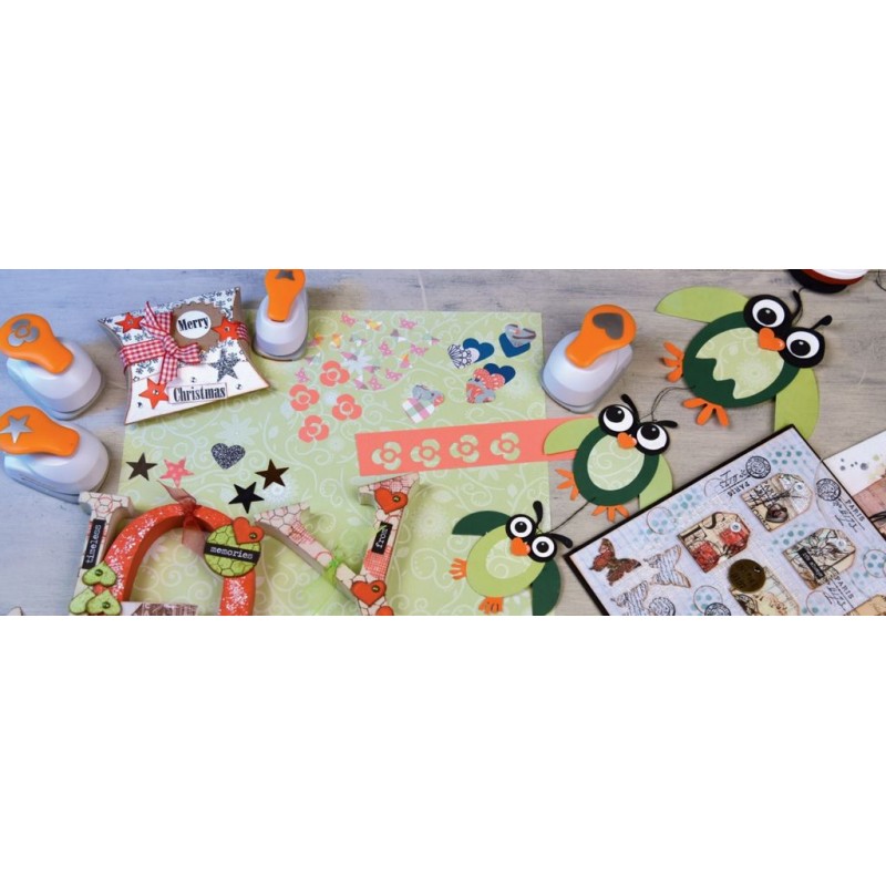 Ozdobná děrovačka, která se ovládá stisknutím páčky. Osvědčená a zábavná i pro tvorbu s dětmi při vytváření školních projektů. Má zabudovaný zachytávač výstřižků, které můžete také používat. Velikost výstřižku M (2,5 cm).Rozměr: 1” - 2,5 cm