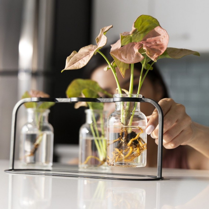 - Prémiové skleněné nádoby – umožňují bezpečné vyjmutí zakořeněné rostliny bez poškození kořenového systému