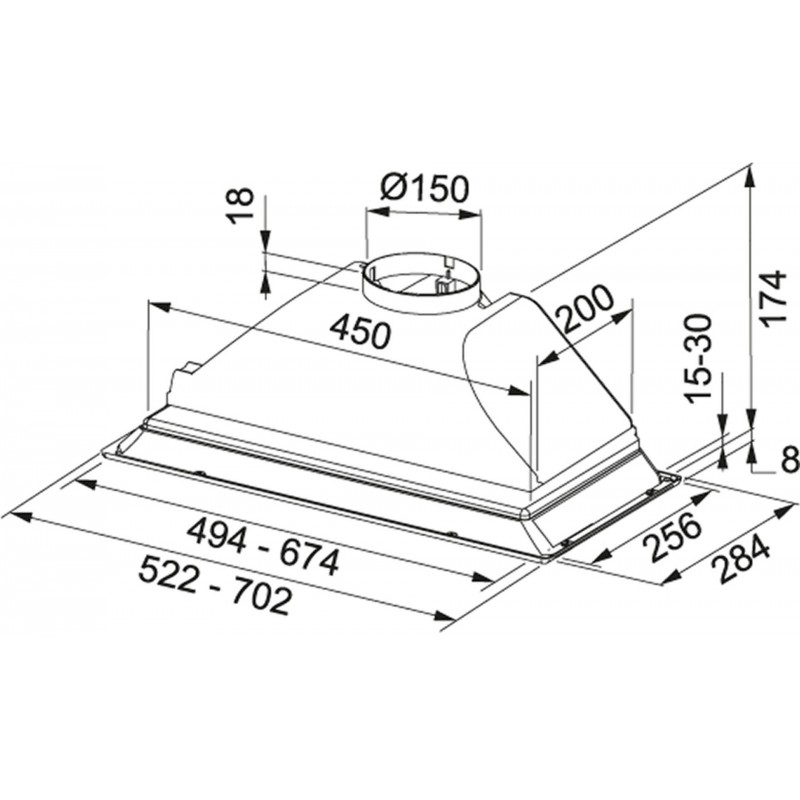 Vestavný odsavač par Franke BOX FBI 732H XS. Odsavač má montážní šířku 70 cm a 3 stupně výkonu. Odsavač par má maximální hlučnost 67 dB a maximální výkon 420 m3/h.• Maximální hlučnost: 70 dB
