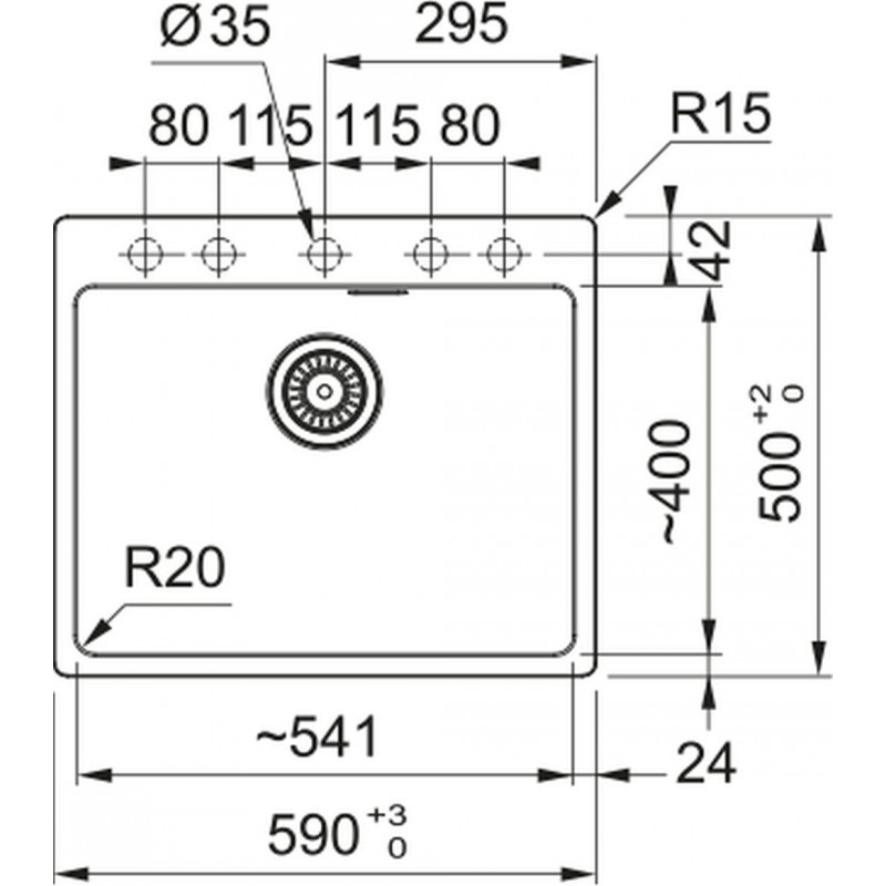 Fragranitový dřez Maris. Cena zahrnuje: Vymezovací podložku pro montáž kuchyňské baterie. Sítkový ventil 3 1/2“ s přepadem a nerezovou krytkou ventilu. Sifon pro úsporu místa 6/4“ s odbočkou na myčku nádobí. 5 Míst pro vyvrtání otvoru. Možnost umístit dávkovač saponátu. Fixační příchytky Fast-Fix.