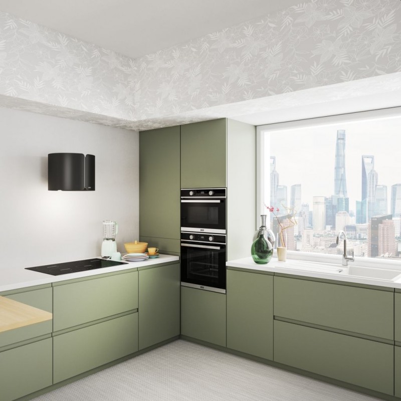 Komínový odsavač par Smart Suspended. Provedení matná černá (NCS S 9000-N). Energetická třída A. Tlačítkové ovládání. 3 Stupně výkonu. Intenzivní stupeň. Pozor! Pouze recirkulace, nelze napojit na vnější odtah.
