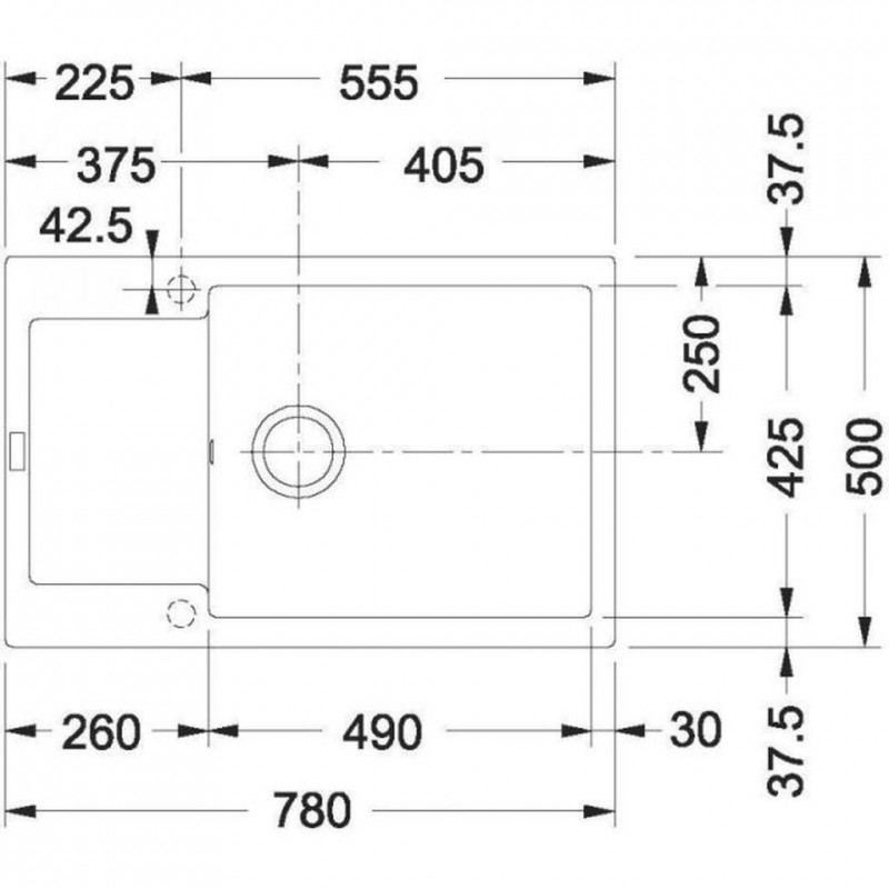 - dřez: 490 × 425 × 200 mm