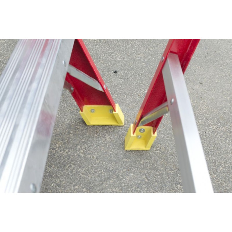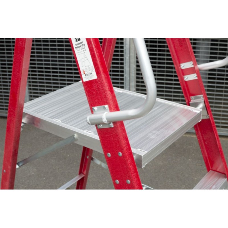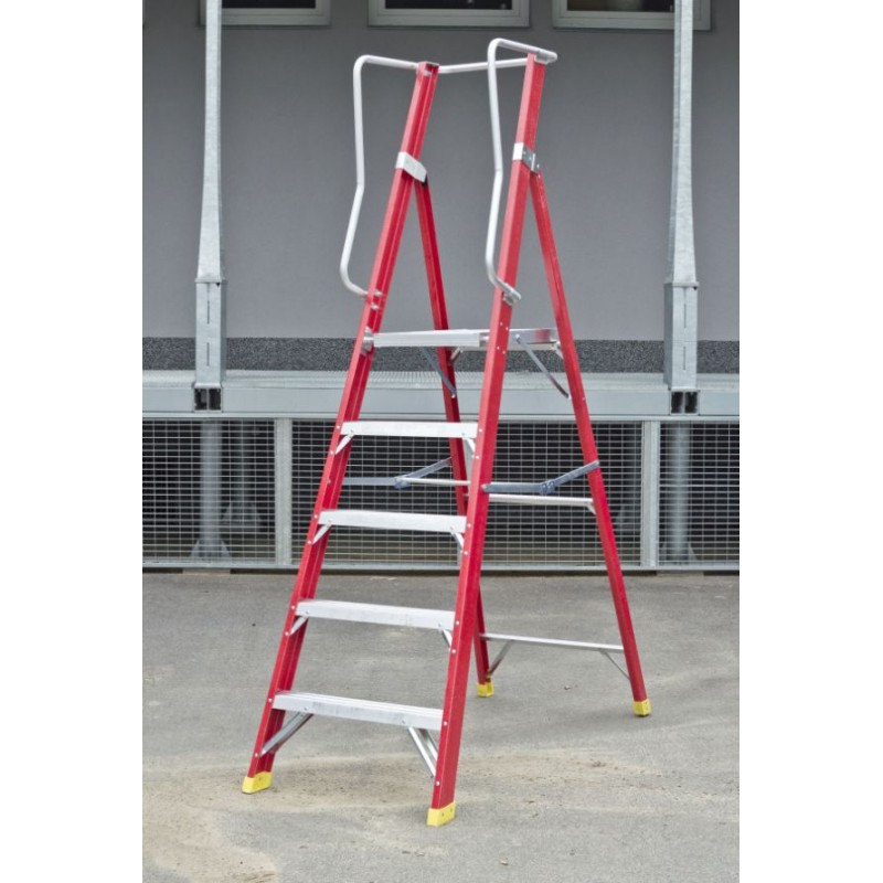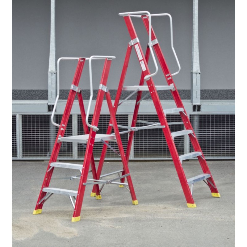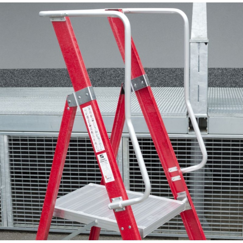 Jednostranné pracovní schůdky G21 ProfiLine jsou s oblibou využívány pro montážní práce v různých řemeslných odvětvích, v úklidových službách nebo ve skladech.Stabilní konstrukce schůdků o hmotnosti 15,2 kg je vysoká 233 cm s 4 nášlapnými stupni a plošinou ve výšce 141 cm. Bočnice jsou vyrobeny z kvalitního sklolaminátu, který je odolný proti povětrnostním vlivům, korozi a je strukturálně stálý. Na bočnicích jsou umístěna pevná jistící držadla pro snadný výstup a stání při práci.