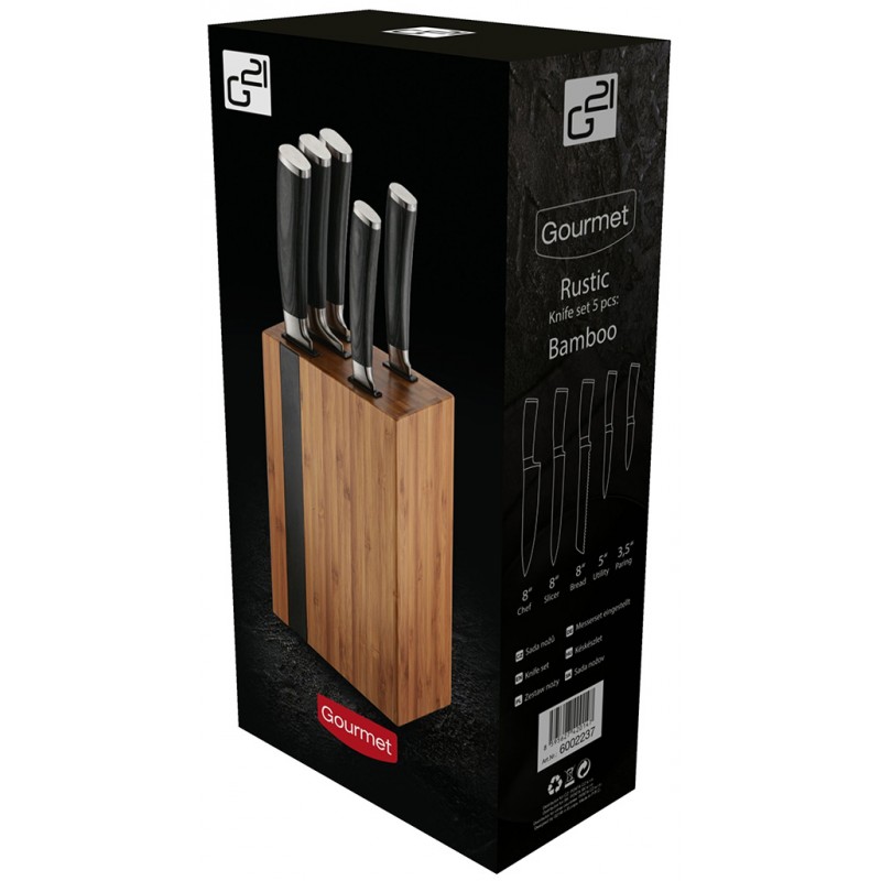 G21 Sada nožů Gourmet Rustic 5 ks + bambusový blok 6002237