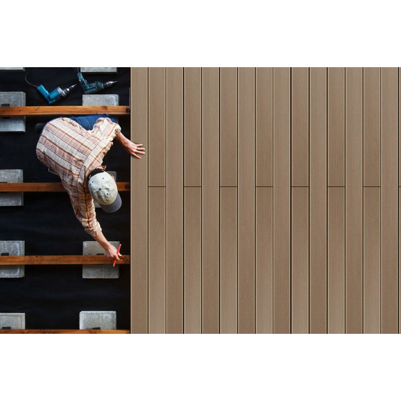 Materiál WPC (Wood plastic components) je směs tvořená z 60 % z dřevitých vláken a ze 40 % z plastu. S pomocí vlivu tlaku a teploty (extrudace) vzniká odolný a bezúdržbový materiál, který je praktický a po všech stránkách vysoce užitkový.