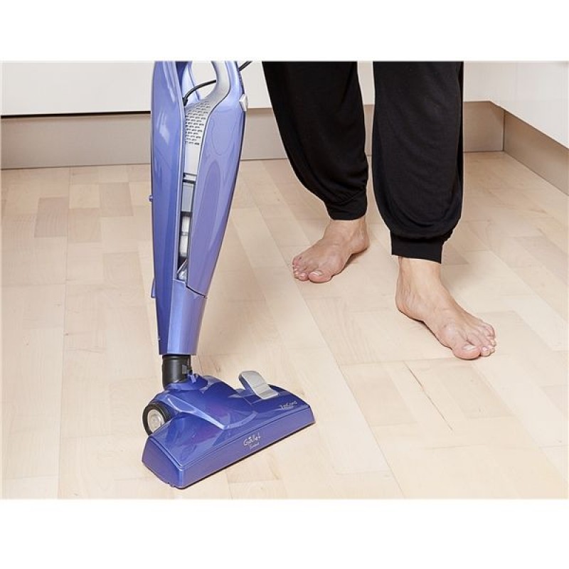 Gallet ASP 612 Evreux je praktický tyčový vysavač 2v1, s využitím jako ruční, či stojatý (elektrické koště). Je ideální k úklidu všech typů podlah, hůře dostupných míst i drobků ze stolu. Disponuje podlahovou hubicí s ohebným kloubem, poskytujícím dostatečný pohyb do všech stran, nechybí štěrbinová hubice a kartáček. Je bezsáčkový, s prachovou nádobou o objemu 0,8 l a účinným omyvatelným HEPA filtrem. Lze jej uskladnit ve vertikální poloze. Oceníte úchyt pro sedmimetrovou přívodní šňůru přímo na vysavači a výhodou je i jednoduché a rychlé sestavení. Jeho příkon je 600 W a překvapí hlučností jen 68 dB.