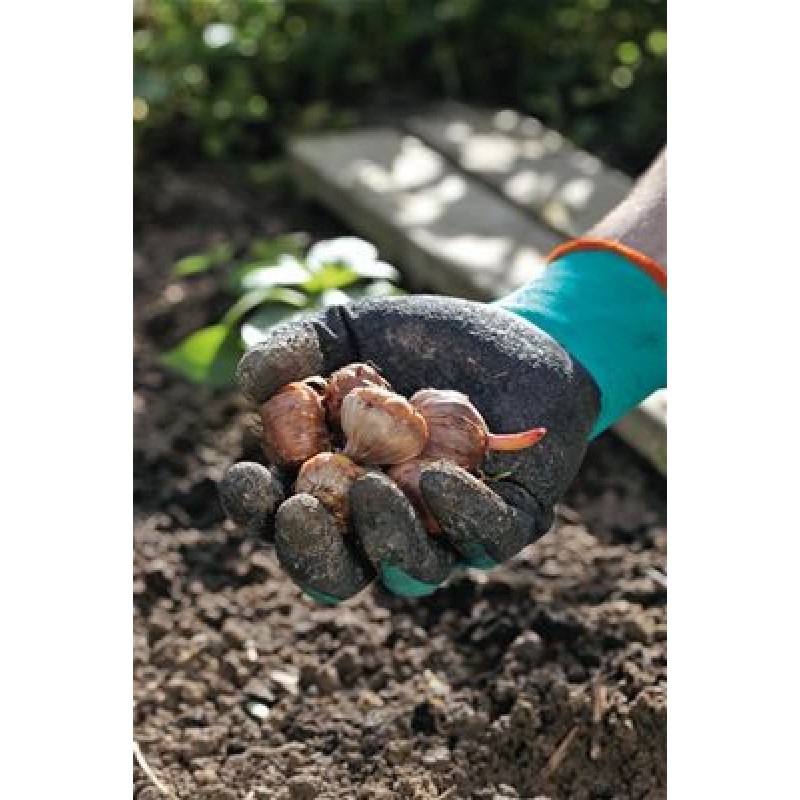 Praktické GARDENA zahradní rukavice jsou určeny pro veškeré práce na zahradě. Chrání ruce při řadě prací, jako je např. sázení nebo přesazování rostlin, hrabání, prořezávání nebo zametání. Robustní dlaňová část rukavic pomáhá dobrému úchopu např. květináčů a nářadí. Díky výborně zpracovaným konečkům prstů lze provádět i nejjemnější práce. Skvělá kvalita materiálu, který je vyroben z prodyšné a odolné bavlněné tkaniny, zaručuje, že se v nich ruce nebudou potit. Optimální tvar a speciální design palce poskytují dodatečné pohodlí při nošení a manipulaci, zaručují příjemný prodyšný pocit a dlouhou životnost.