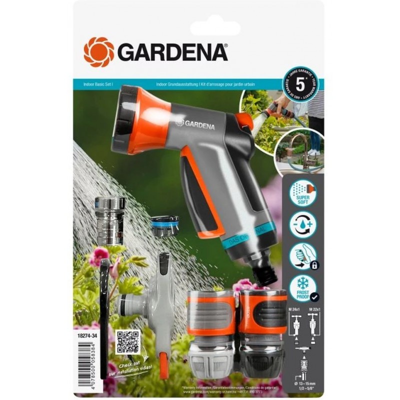 Gardena sada se zavlažovací sprchou 18274-34 je praktické řešení pro všechny, kteří potřebují rychle a jednoduše připojit zahradní hadici k vnitřnímu vodovodnímu kohoutku. Díky kompletnímu příslušenství systému GARDENA Original System lze hadici okamžitě připojit a začít se zavlažováním rostlin na balkoně, terase nebo v zimní zahradě.