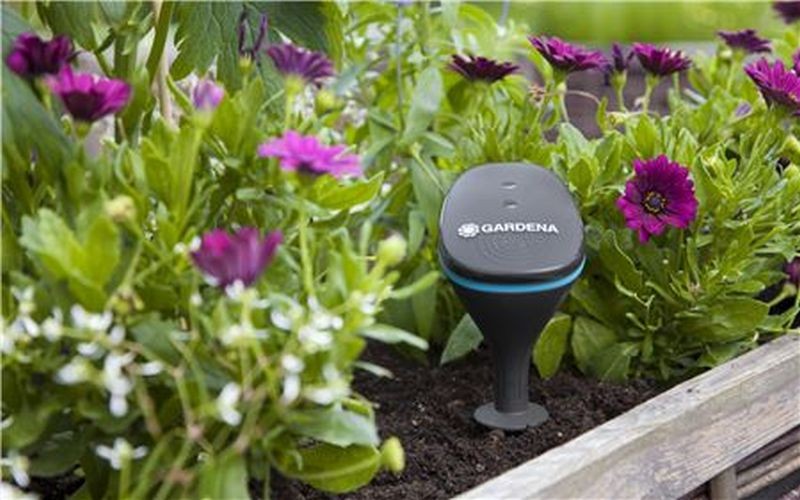 Senzor smart měří vlhkost půdy, teplotu a sluneční intenzitu ve vaší zahradě a tyto naměřené hodnoty přenáší v pravidelných intervalech do aplikace GARDENA smart App.