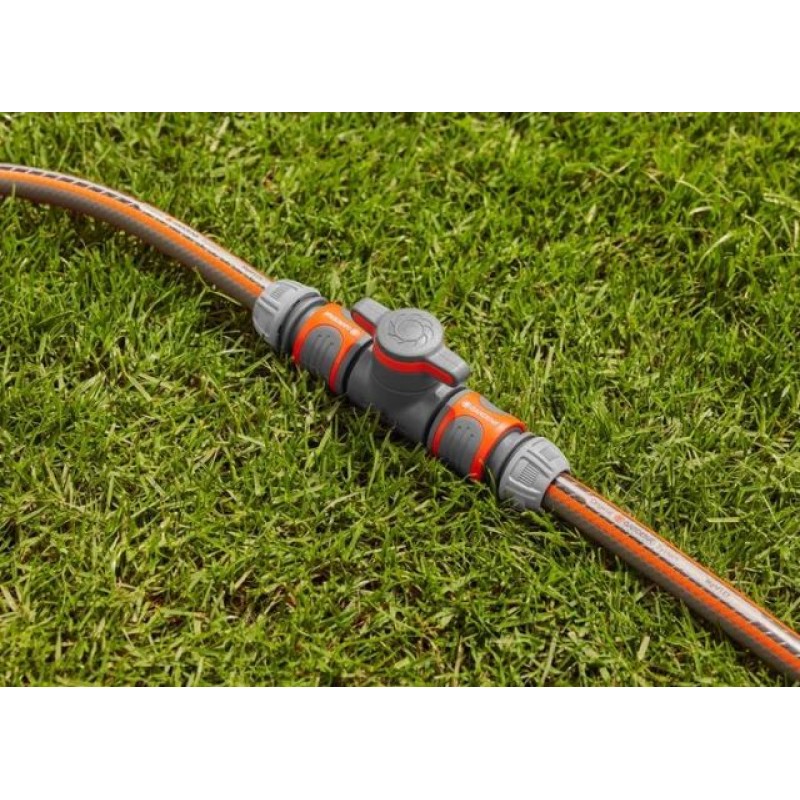 Gardena 18266-20 spojka s průtokovým ventilem umožňuje pohodlnou regulaci průtoku vody přímo na zahradní hadici. Intenzitu snadno nastavíte nebo vodu zcela zastavíte bez nutnosti vracet se ke kohoutku.