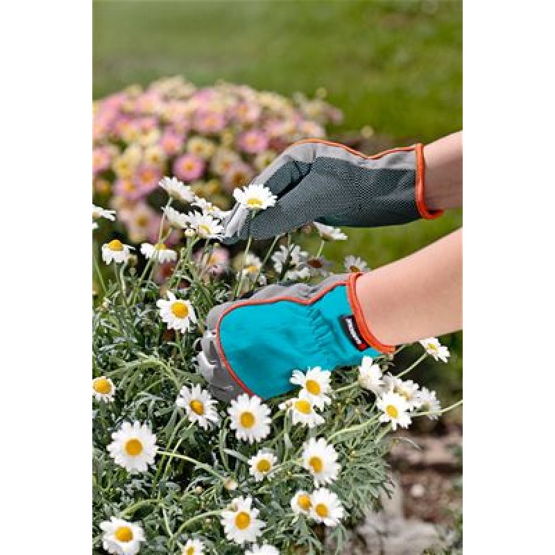 Praktické GARDENA zahradní rukavice jsou určeny pro veškeré práce na zahradě. Chrání ruce při řadě prací, jako je např. sázení nebo přesazování rostlin, hrabání, prořezávání nebo zametání. Robustní dlaňová část rukavic pomáhá dobrému úchopu např. květináčů a nářadí. Díky výborně zpracovaným konečkům prstů lze provádět i nejjemnější práce. Skvělá kvalita materiálu, který je vyroben z prodyšné a odolné bavlněné tkaniny, zaručuje, že se v nich ruce nebudou potit. Optimální tvar a speciální design palce poskytují dodatečné pohodlí při nošení a manipulaci, zaručují příjemný prodyšný pocit a dlouhou životnost.