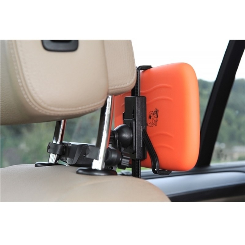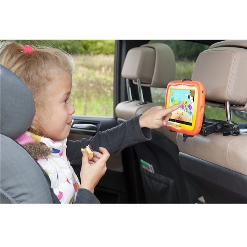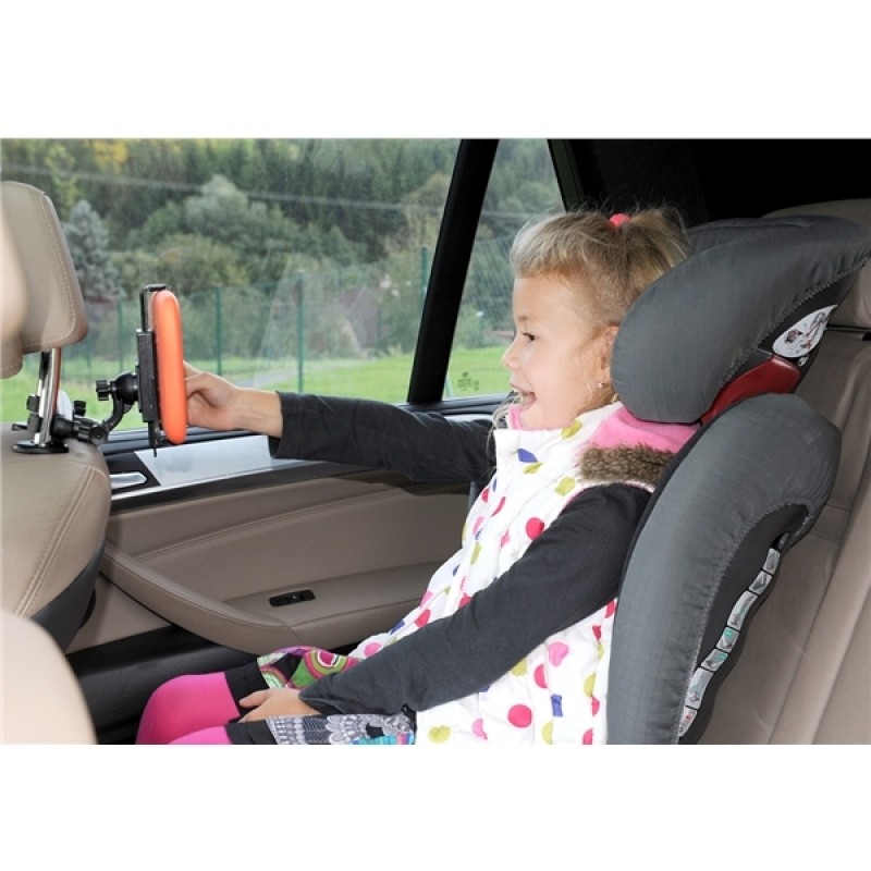 Držák se jednoduše a rychle upíná na opěrky hlavy sedadla automobilu. Tablet vašeho dítěte je tak během cestování bezpečně upevněn, dítě ho má neustále na dosah a za jízdy má o zábavu postaráno.Rozteč čelistí držáku se jednoduše nastavuje zatlačením na upevňovací ramena. Naopak uvolnit tablet z držáku je velice jednoduché. Stačí zamáčknout aretační tlačítko a čelisti se uvolní. Jak snadné ! Tablet v držáku lze pohodlně otáčet a díky flexibilnímu ramenu nastavovat tablet do různých pozic.