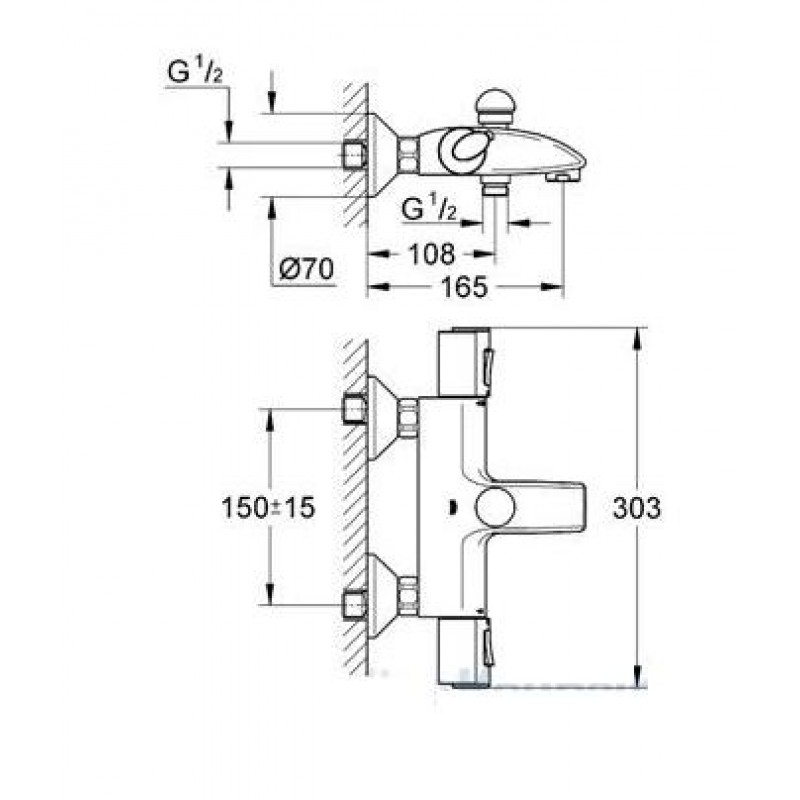 GROHE Grohtherm 1000 termostatická vanová baterie, DN 15, chrom 34155000- nástěnná montáž