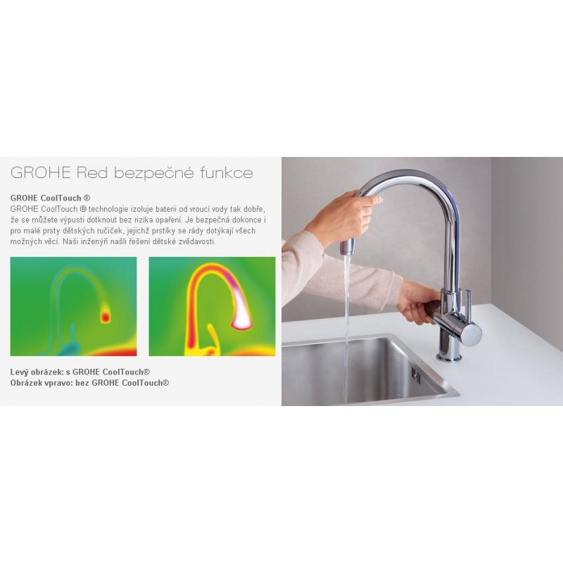GROHE Red™ dokazuje, že pohodlí a povědomí o životním prostředí nemusí být vzájemně exkluzivní. Na rozdíl od vodního boileru nebo vaření vody na sporáku, s naší inovací si ohříváte jen tolik vody, kolik potřebujete. Tím se šetří voda, energie a dokonce i náklady. Základní režim boileru GROHE Red™,stojí jen 10 centů denně * k udržení vody při 100 ° C po zahřátí. * Vypočítáno na základě průměrných nákladů na energii pro rok 2009 v Německu, v závislosti na okolní teplotě vody.