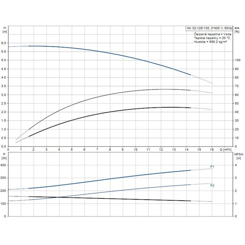 Údaje čerpadla pro dané otáčky: 1400 ot/min