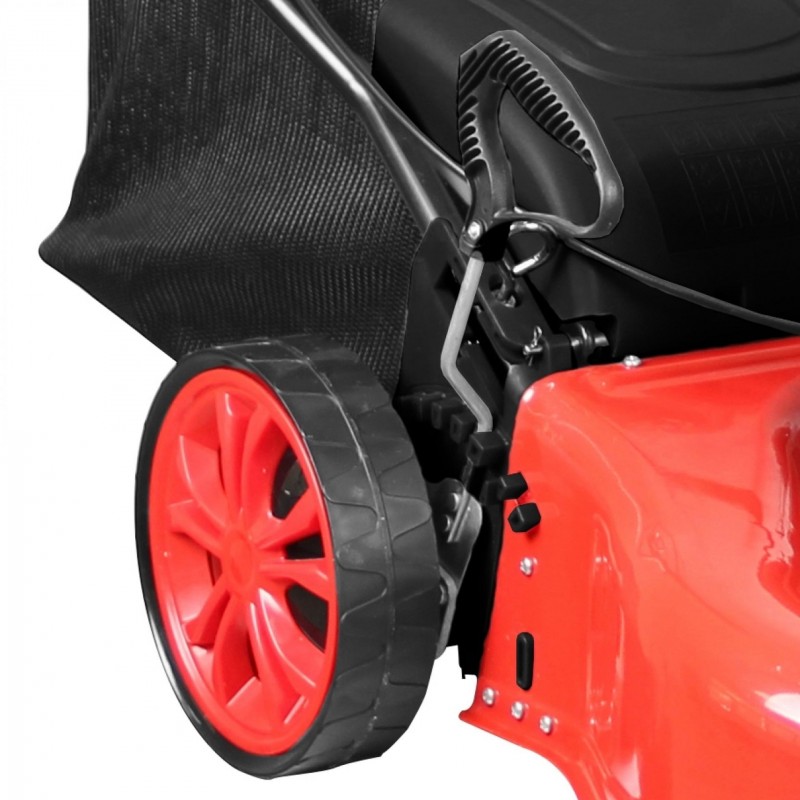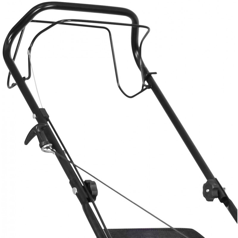 Automatický pojezd (pohon zadních kol, 1rychlostní: 3,6 km/hod.); centrální nastavení výšky sečení (6stupňové, rozsah: 25 - 75 mm), funkce „2IN1“ - sečení, sběr trávy do koše.