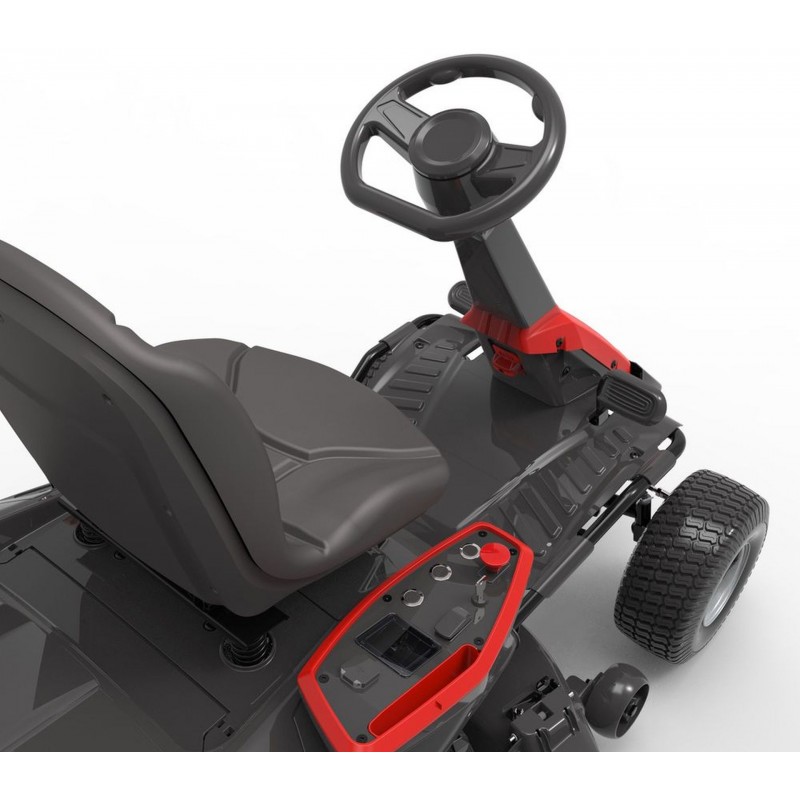 Traktor je vybaven dvěma noži a nabízí šíři záběru 96 cm, což umožňuje rychlé a efektivní sekání. Nastavitelná výška sečení a boční výhoz trávy zajišťují přesnou údržbu trávníku podle aktuálních potřeb. Maximální rychlost 8 km/h vpřed a 4 km/h při couvání umožňuje pohodlnou a plynulou práci.