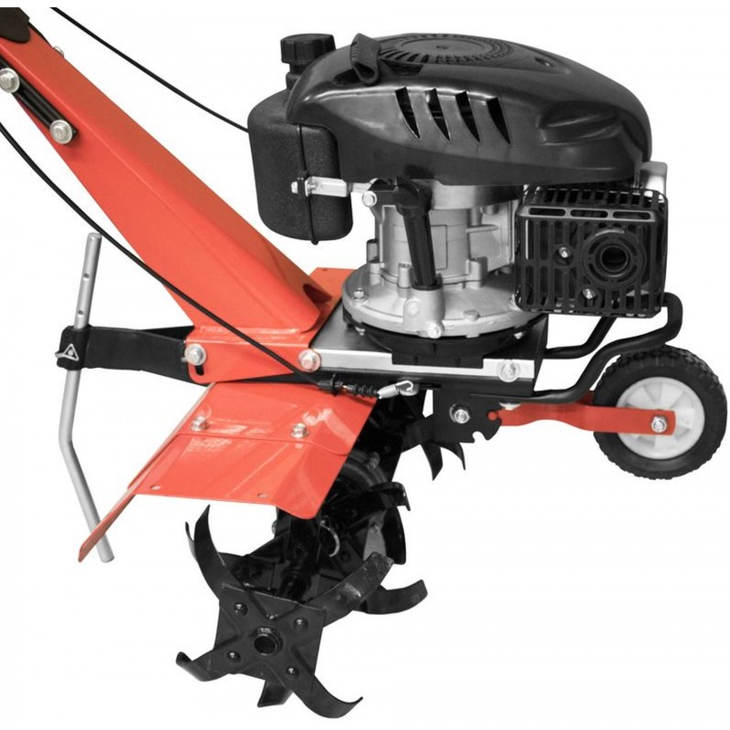 Výkonný benzinový kultivátor, určený k přípravě zahradních nebo květinových záhonů.
