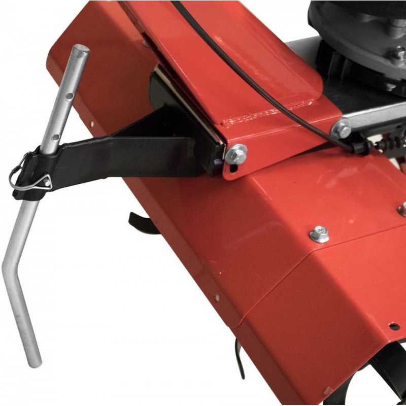 4 - 6 ocelových nožů (› 2 krajní odnímatelné, průměr nože: 260 mm; variabilní šířka záběru 360 - 600 mm), 3polohové nastavení hloubky kultivace (› rozsah: 125 - 260 mm).