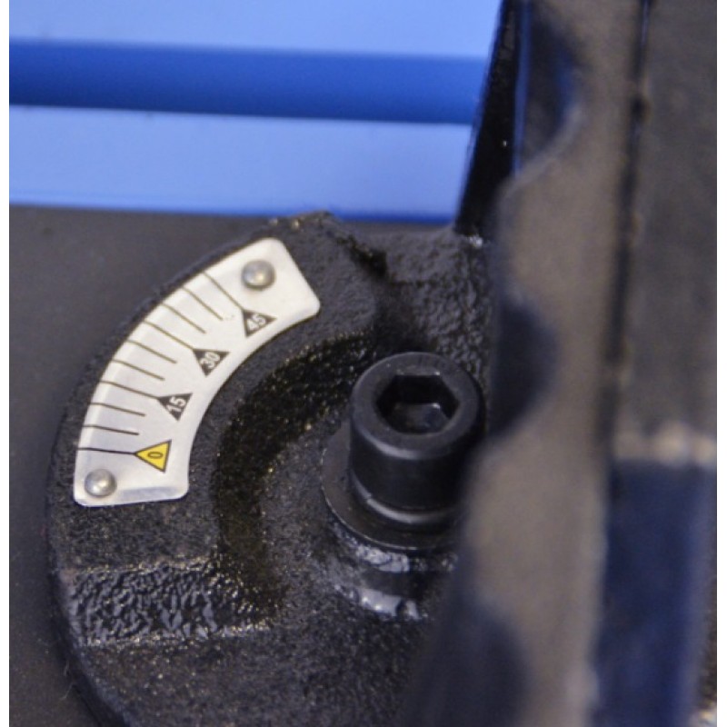 Podélné/příčné dělení kovových materiálů (dorazový úhelník, rozsah nastavení: 45°).
