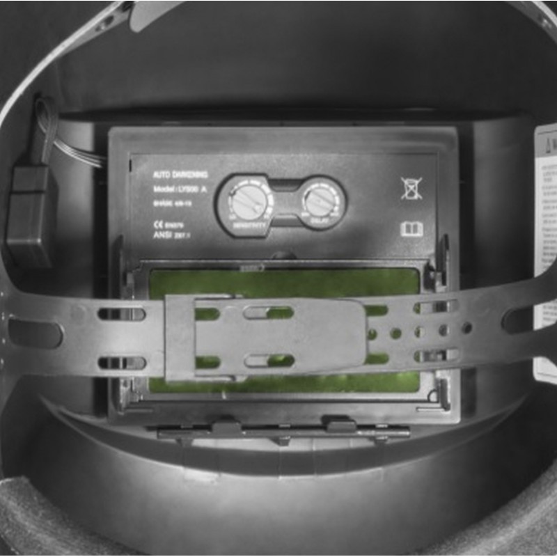 Samostmívací kazeta - automatické ztmavení (rozjasnění) filtru v rozsahu DIN 9 - 13 (DIN 4), vč. přesného nastavení citlivosti (filtru) na intenzitu vnějšího osvětlení a prodlevy mezi zhasnutím oblouku a projasněním.