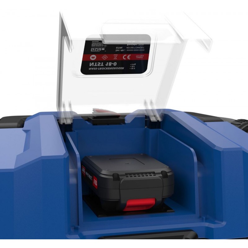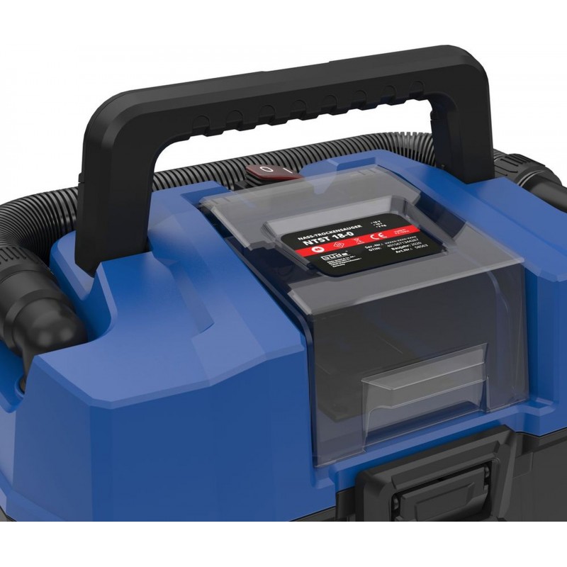 Výkonný akumulátorový vysavač na mokré a suché vysávání ze skupiny 18V E3 akumulátorového systému pro mobilní použití kolem domu a zahrady.