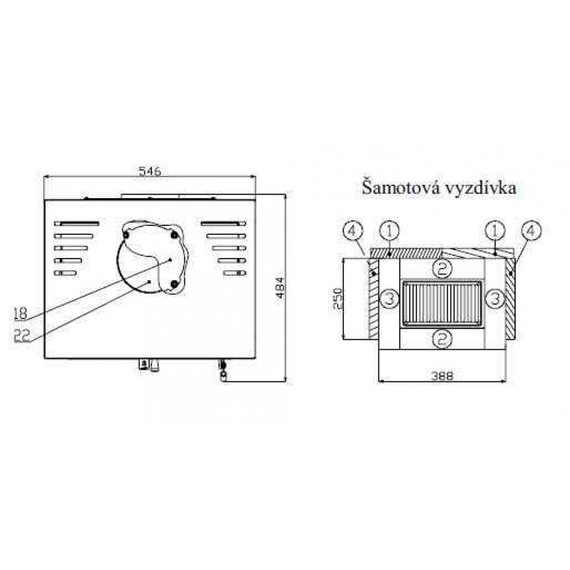 - výkon kouřovodu: vrchní, zadní 150