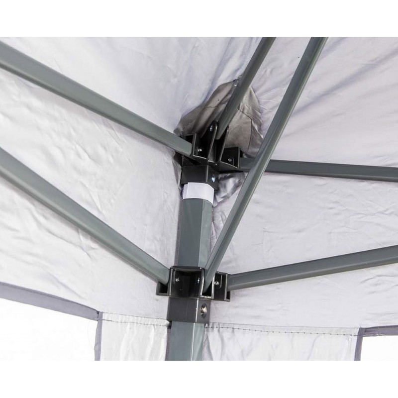 Skládací altán HAPPY GREEN SULTAN o rozměru 3 x 3 m a výškou 2,5 m se stabilní nosnou konstrukcí nohy 30 x 30 / 25 x 25 mm a skládacím nůžkovým mechanismem žeber 10 x 18 mm. Střešní potah 210D Oxford je opatřen vnitřní stříbrnou vrstvou a dvojitým nástřikem pro zvýšení odolnosti proti povětrnostním vlivům.