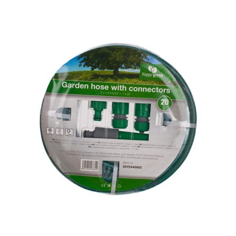 HAPPY GREEN Zahradní hadice se spojkami Garden 20 m 50YE440005Zahradní hadice se spojkami Garden, 3 spojky, 1 tryska, délka 20m, 1/2', tl. 1,8mm, barva zelená